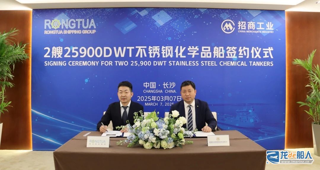 3月7日,招商局金陵鼎衡船舶(揚州)有限公司與蓉達航運集團正式簽署2艘2.59萬噸級不銹鋼化學(xué)品船造船合同。